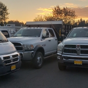 If you have an electrician and he has been working in a low roof van for years. We point out the lost time when your electrician has knee problems because he has to crawl in and out of his overflowed van. If we buy a little bigger van that has a high roof, now the employee can walk in and out of the van. Have more area to store parts and therefore find the parts quicker, or have them at all at once instead of needing to make multiple trips. Plus, with us based in the Northwest, it rains. They now have a working mobile canopy area to assemble parts and pieces for the job site.